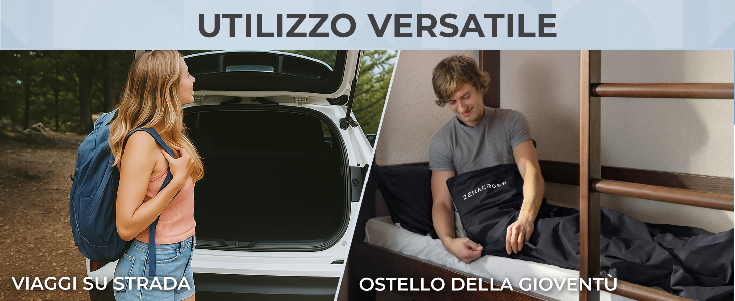 - Estetico e funzionale: Disponibile in vari colori eleganti, questo lenzuolo sacco a pelo combina stile e funzionalità. Confezionato in un packaging compatto, il nostro sacco a pelo lenzuolo assicura un’esperienza ottimale per ogni viaggiatore.